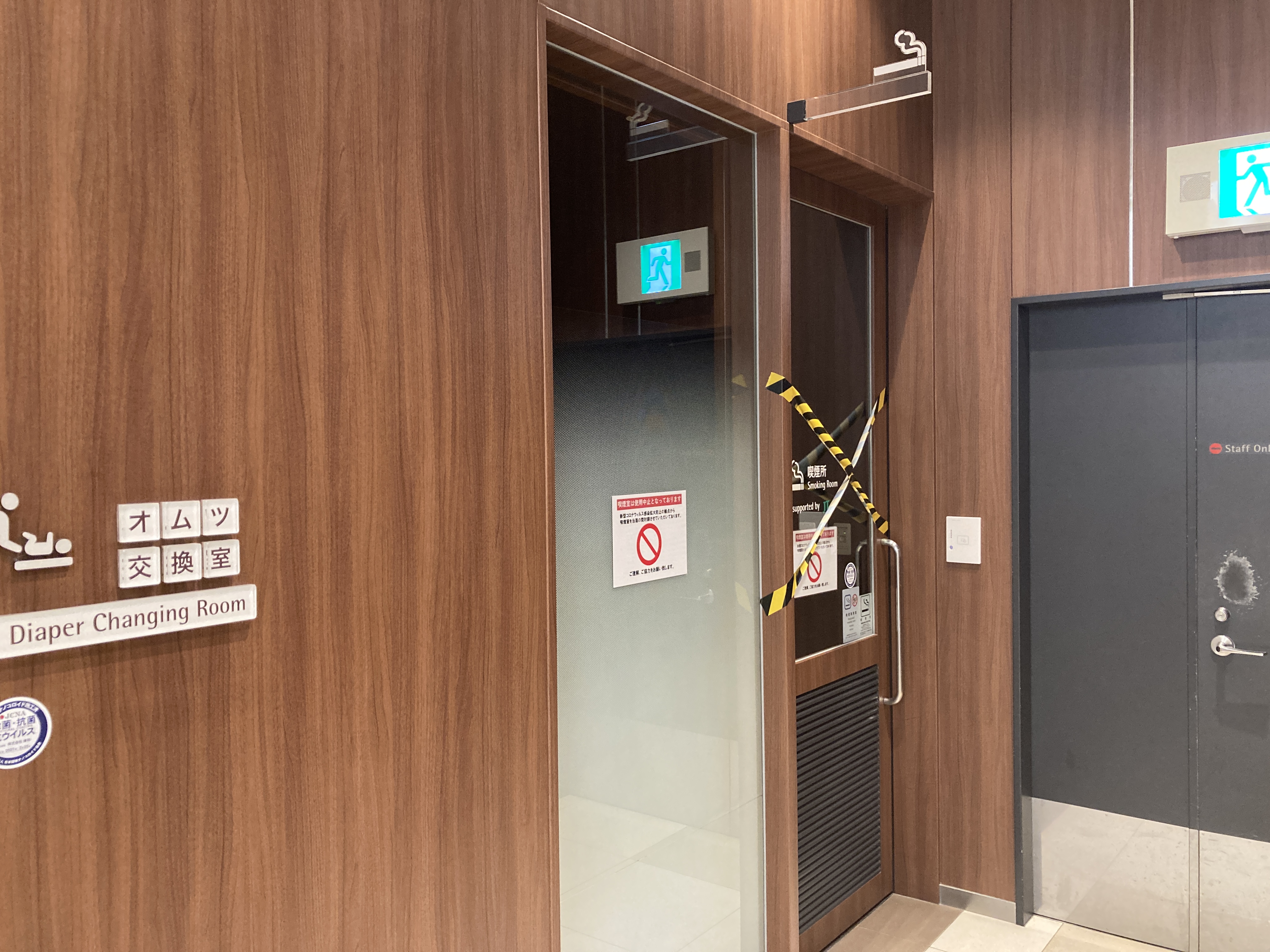 ララテラスの4階には喫煙所がありますが、2021年4月22日現在、新型コロナウイルス感染症流行のため当面の間、封鎖となっていました。